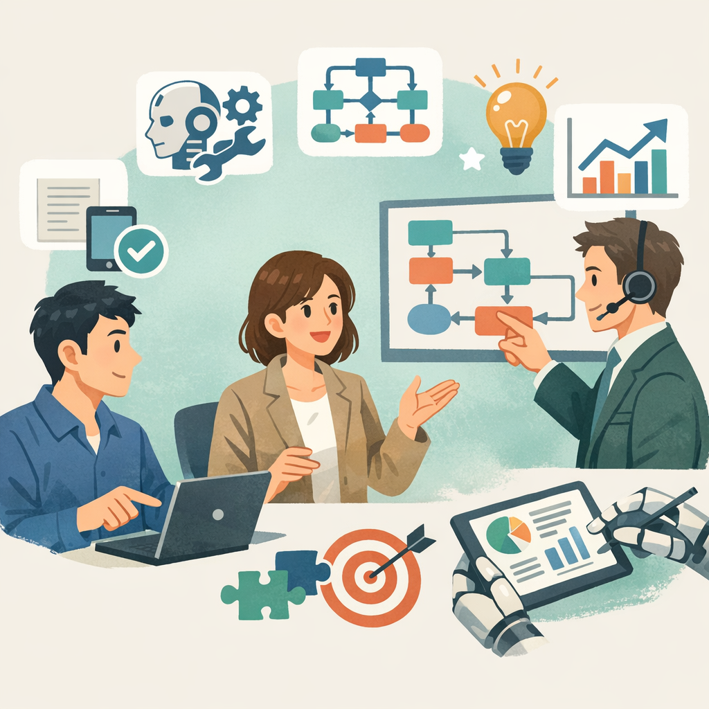 AI連携ソリューションを提案し、実際に導入する段階では、技術的な側面だけでなく、クライアントとのコミュニケーションやプロジェクト管理能力も問われます。ここでは、コンサルティングを成功に導くための実践的なノウハウをご紹介します。
